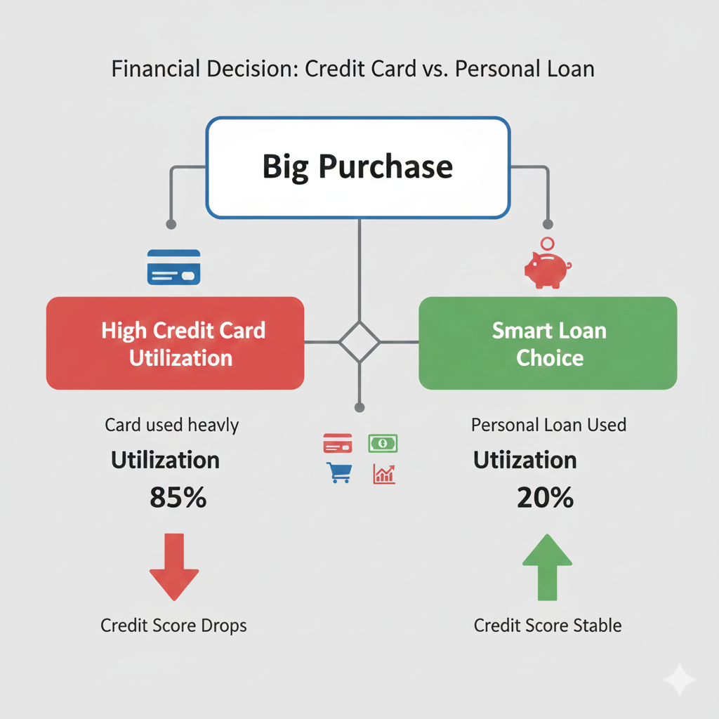 Using a personal loan instead of a card for a big purchase can keep your credit card utilization ratio low.