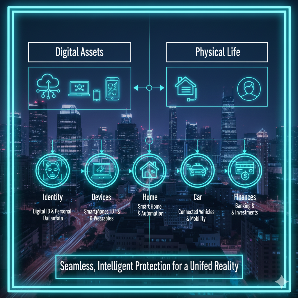 However, most people still buy protection in separate boxes. Cyber insurance sits apart from home insurance. Identity protection feels like a subscription. Device coverage feels like a warranty. Physical security feels like cameras and alarms.