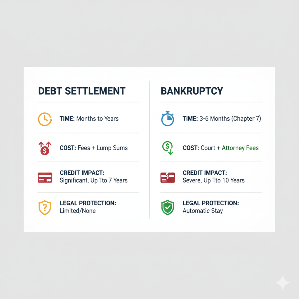 Sometimes settlement is a powerful, rewarding choice. Sometimes bankruptcy is the proven, reliable choice. Your best option is the one that reduces total harm and restores control.