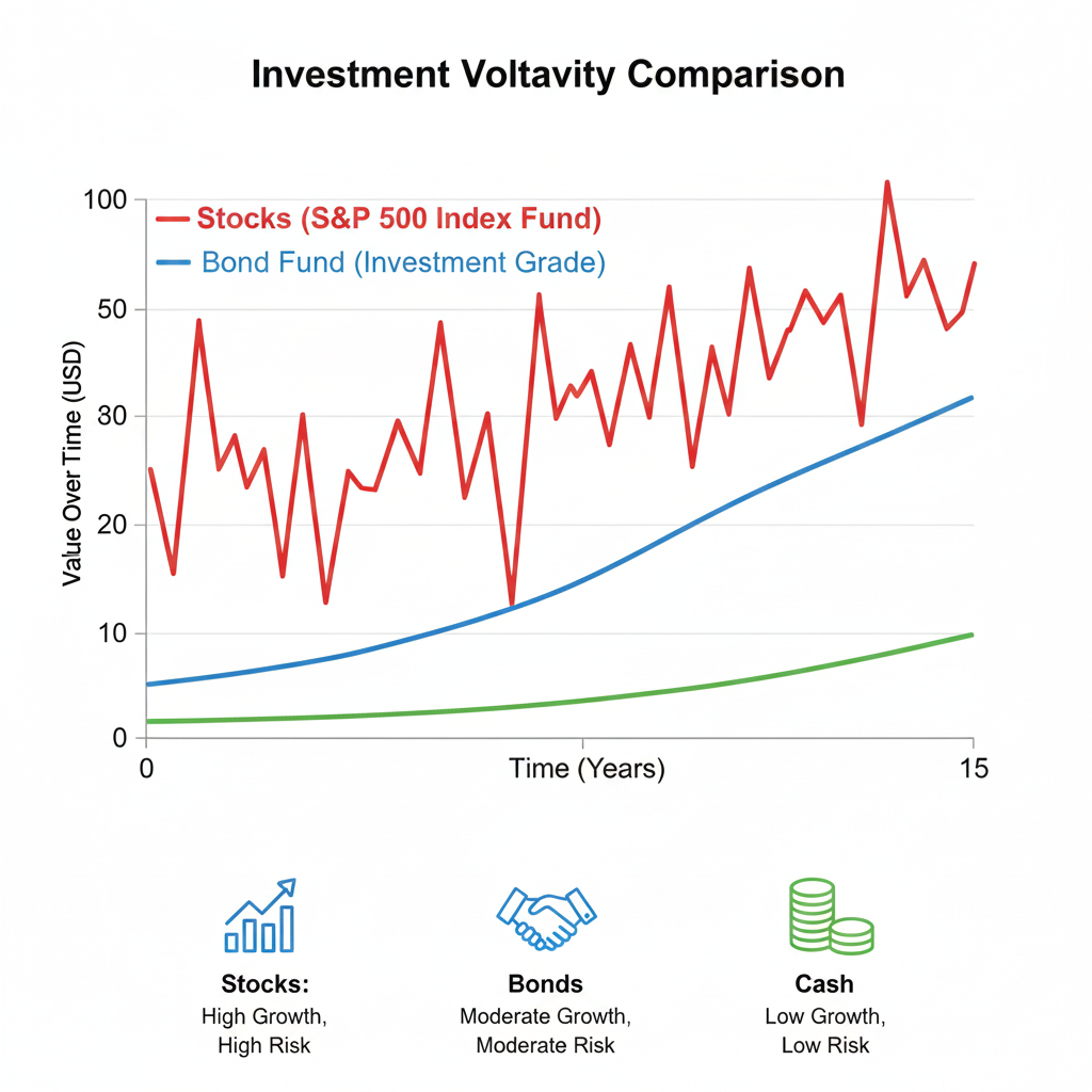 If you invest only in stocks, your portfolio can swing hard. That volatility can feel brutal. Bonds and cash-like assets can soften the ride. Additionally, they can support short-term goals.